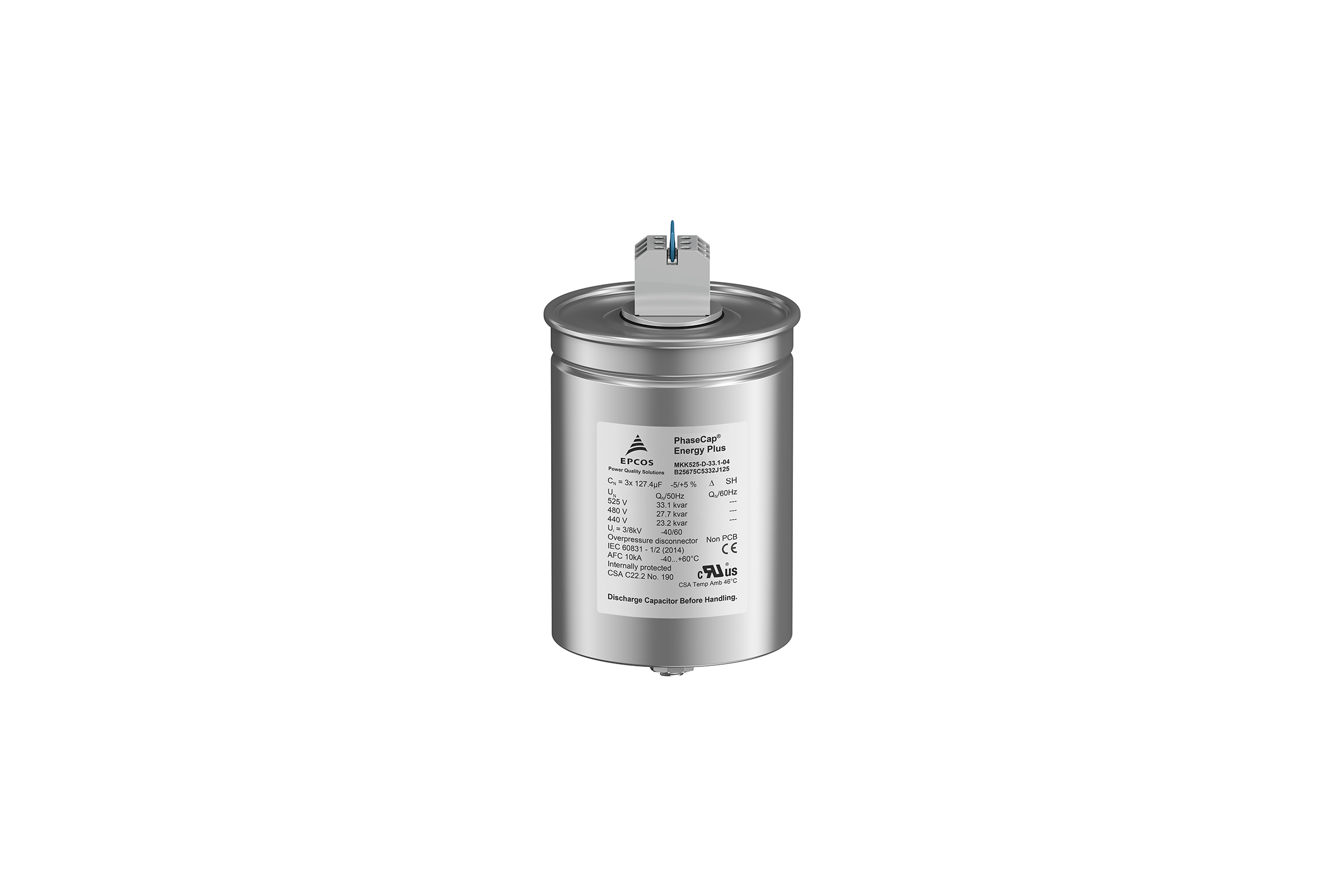 PhaseCap Energy Plus电容器结合了经久耐用的绕组设计和波纹切割技术,能承受相当于额定电流500倍的大冲击电流,并且具有自愈功能,并获得CE和UL认证。内置三相过压分离装置可在过载时断开与主电源的连接。另外,所有电容器均采用   防触电设计的IP20级安全接线端子,并预装陶瓷底座放电电阻。